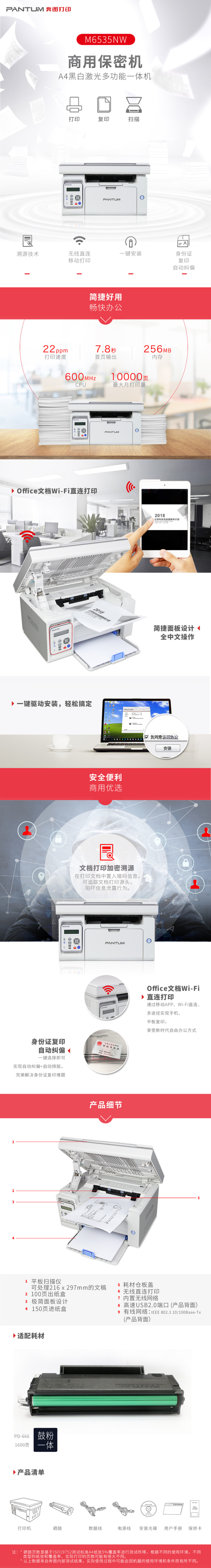 • 商品名稱:奔圖(PANTUM)商用保密系列 M6535NW 黑白激光多功能無線網(wǎng)絡(luò)一體機