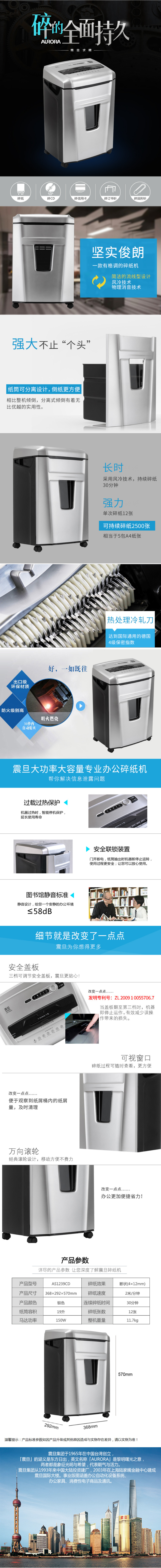 • 商品名稱:震旦 AURORA 大功率大容量專業(yè)辦公碎紙機(jī) AS1239CD 4級保密 12張30分鐘碎CD碎卡靜音