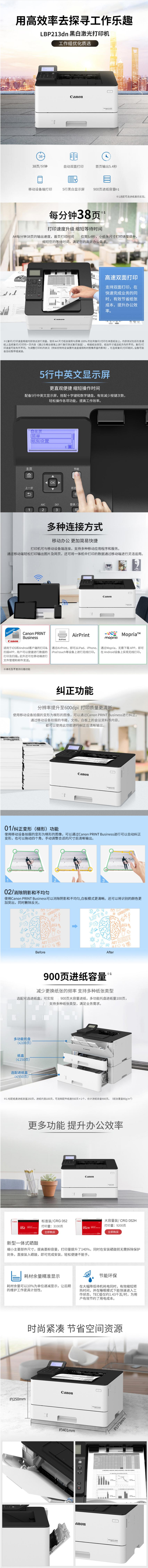 - 商品名稱:佳能(Canon)A4黑白激光打印機(jī) imageCLASS LBP213dn 自動(dòng)雙面打印/38ppm/600*600dpi/耗材CRG052,CRG052H
