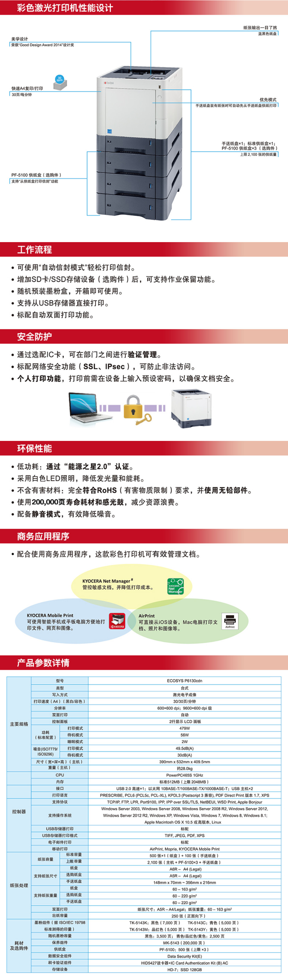 • 商品名稱:京瓷/KyOCERa A4彩色激光打印機(jī)ECOSYS P6130cdn