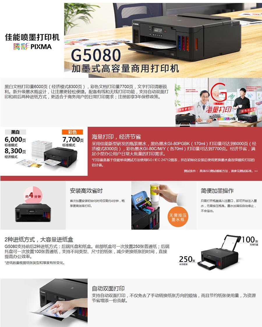 • 商品名稱:佳能(Canon)A4噴墨打印機(jī)G5080