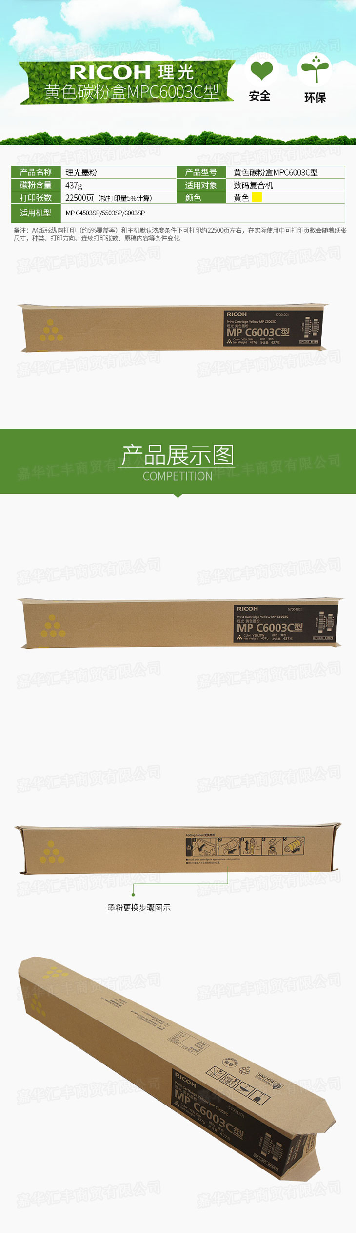 • 商品名稱:理光(Ricoh)黃色碳粉盒MPC6003C型 適用于MP C4503SP/5503SP/6003SP/C4504SP/C6004SP/C4504EXSP/C6004EXSP