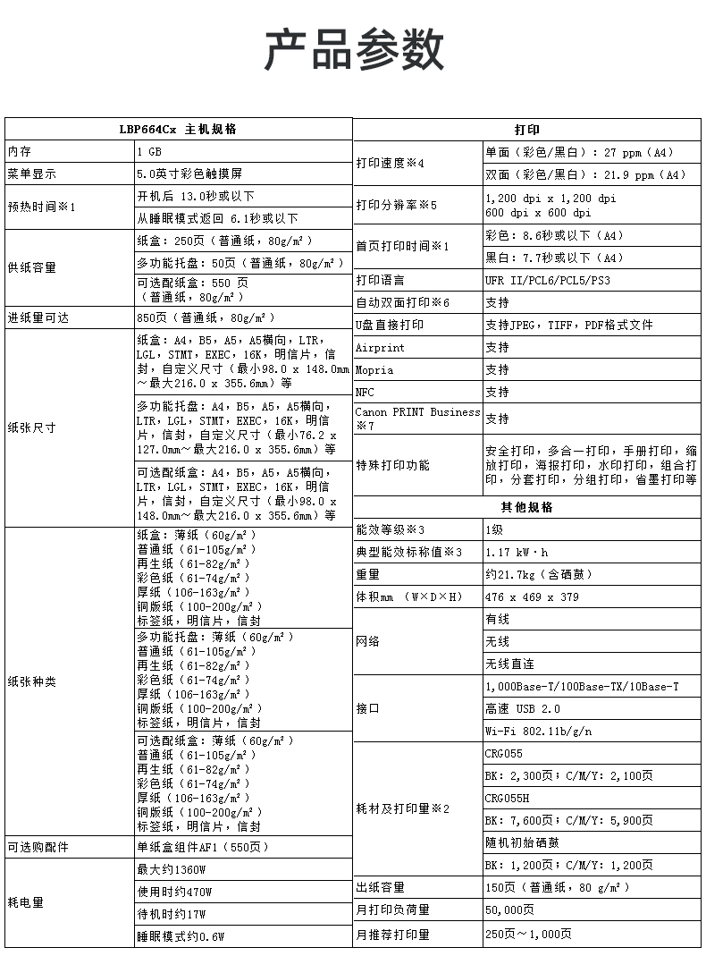 • 商品名稱:佳能(Canon)A4彩色激光打印機(jī)imageCLASS LBP664CX 原廠1年上門