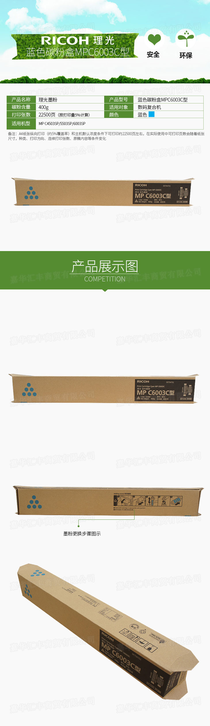 - 商品名稱:理光(Ricoh)藍色碳粉盒MPC6003C型 適用于MP C4503SP/5503SP/6003SP/C4504SP/C6004SP/C4504EXSP/C6004EXSP