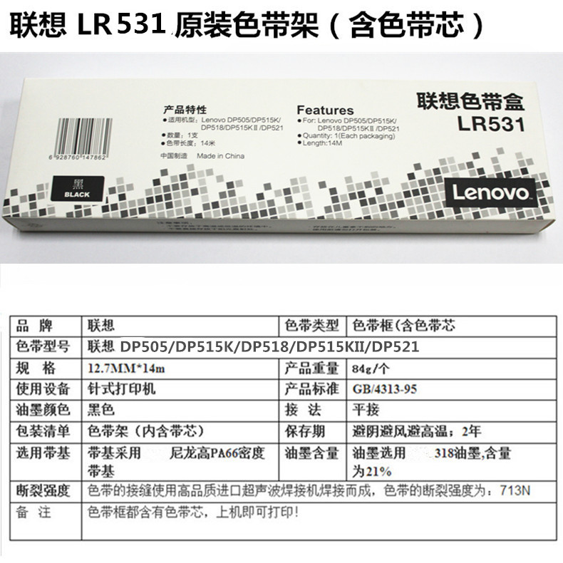 • 商品名稱:聯(lián)想(Lenovo)LR531色帶 適用于DP515K/DP515KII/505/518/521 500萬字符頁