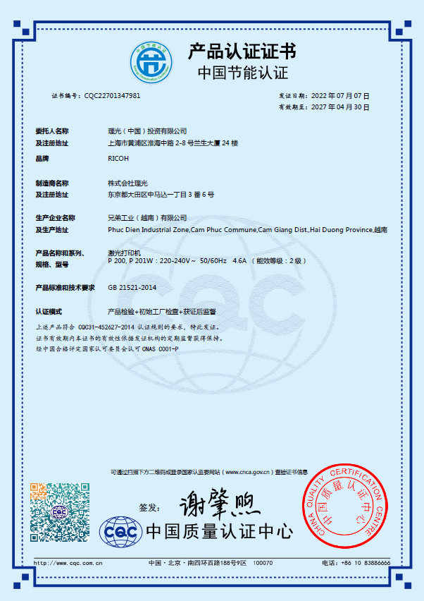• 節(jié)能產(chǎn)品證書(shū)編號(hào):CQC22701347981