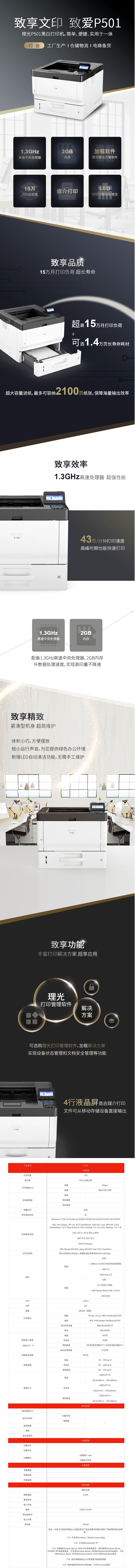 - 商品名稱:理光(Ricoh)P 501 A4黑白激光打印機(jī) 43頁(yè)/分鐘