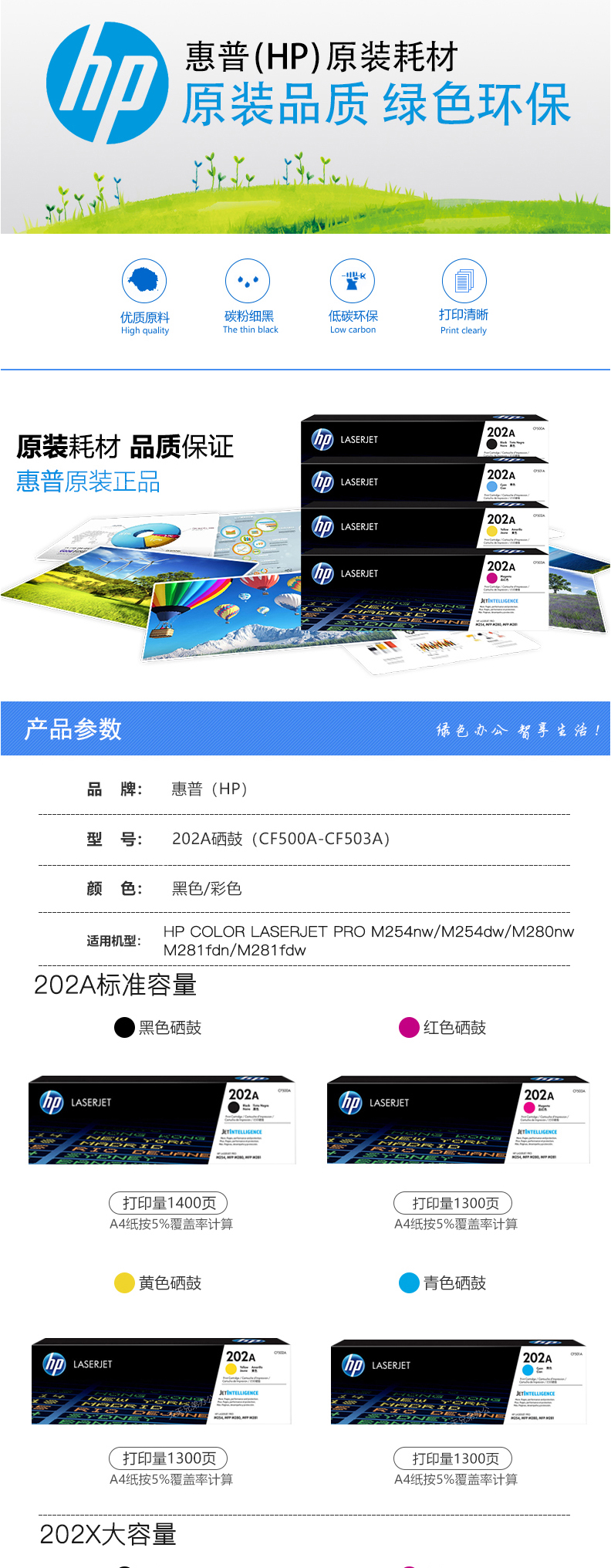 • 商品名稱:惠普(HP)CF500A-CF503A 202A四色套裝硒鼓 適用于M254/M280/M281