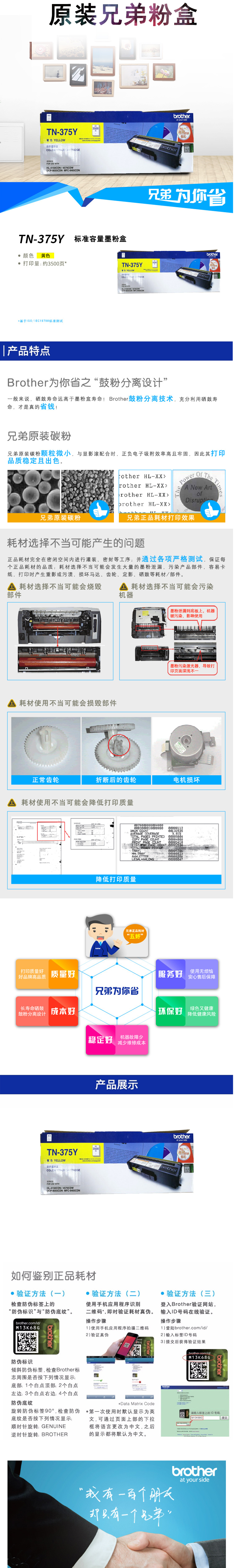 兄弟(brother)TN-375Y 黃色粉盒 適用HL-4150CDN/4570CDW/DCP-9055CDN/MFC-9465CDN機(jī)型 約3500頁