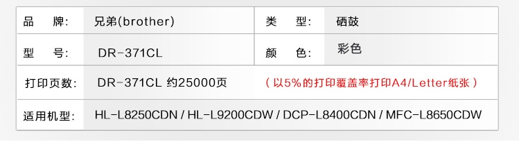 • 商品名稱:兄弟/BROTHER DR-371CL硒鼓 適用兄弟8250/9200/8650CDN/8400 DR-371CL