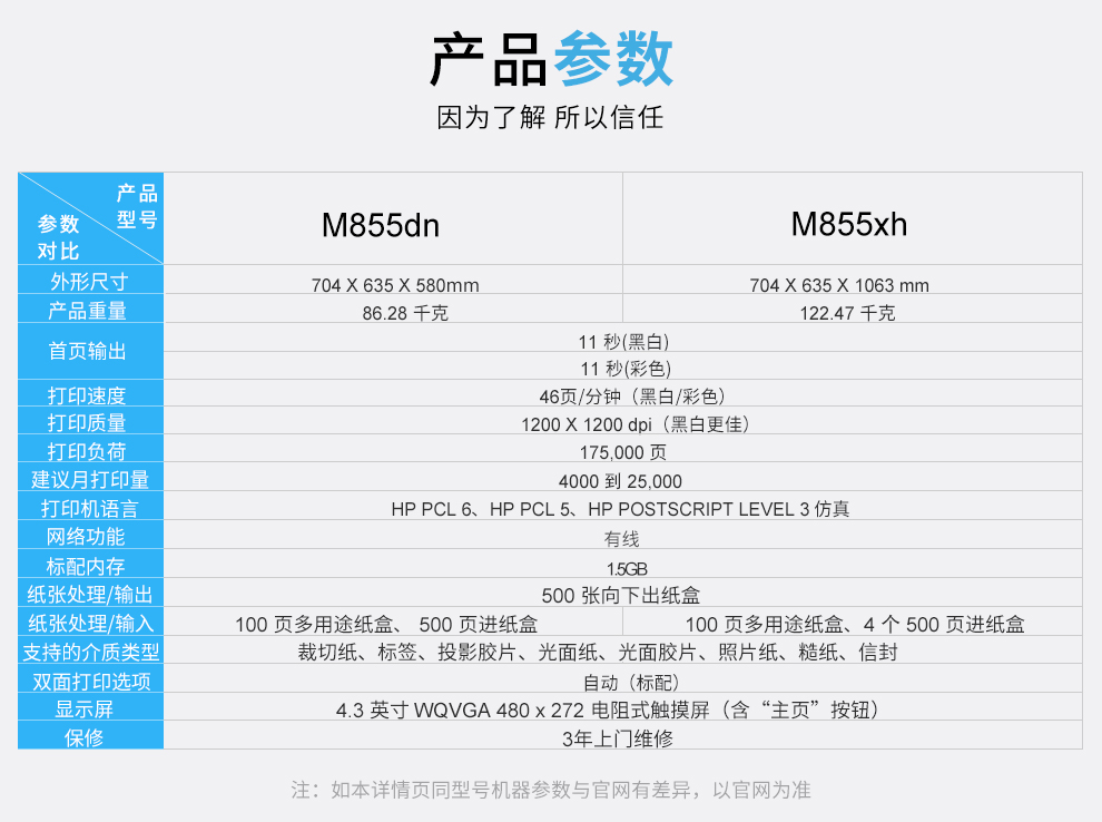 • 型號:Color LaserJet Enterprise M855xh
