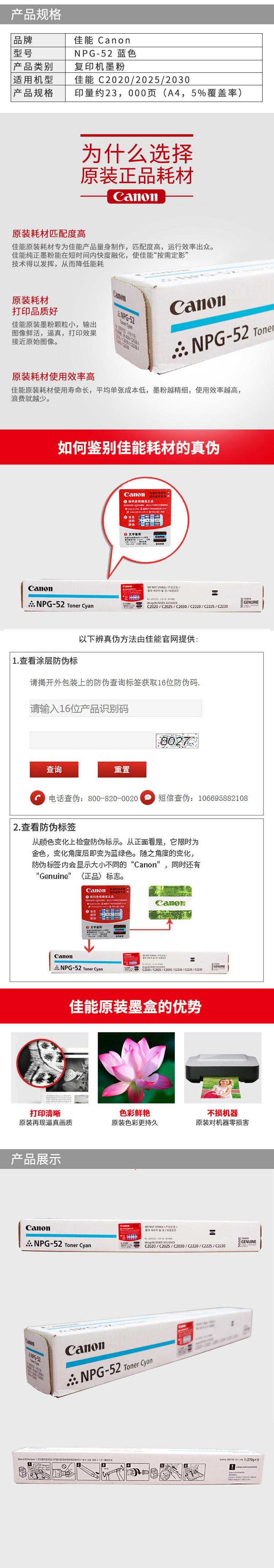• 商品名稱:佳能(Canon)NPG-52C粉 青色墨粉盒 適用C2020/2025 打印量23000頁