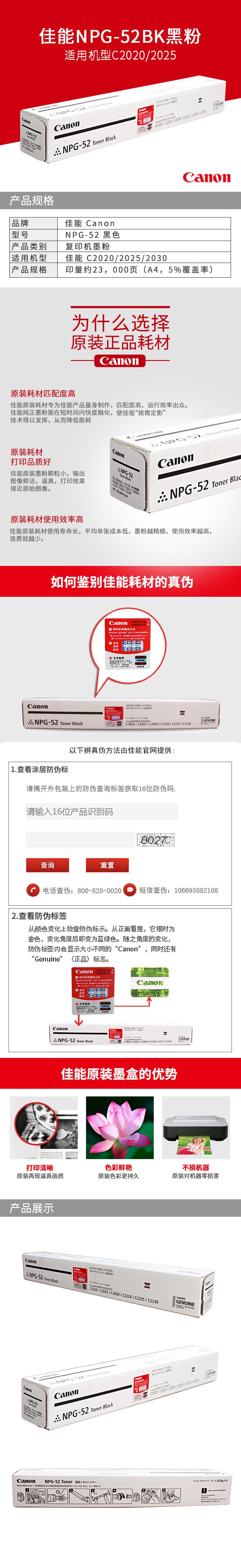 • 商品名稱:佳能(Canon)NPG-52BK粉 黑色墨粉盒 適用C2020/2025 打印量23000頁