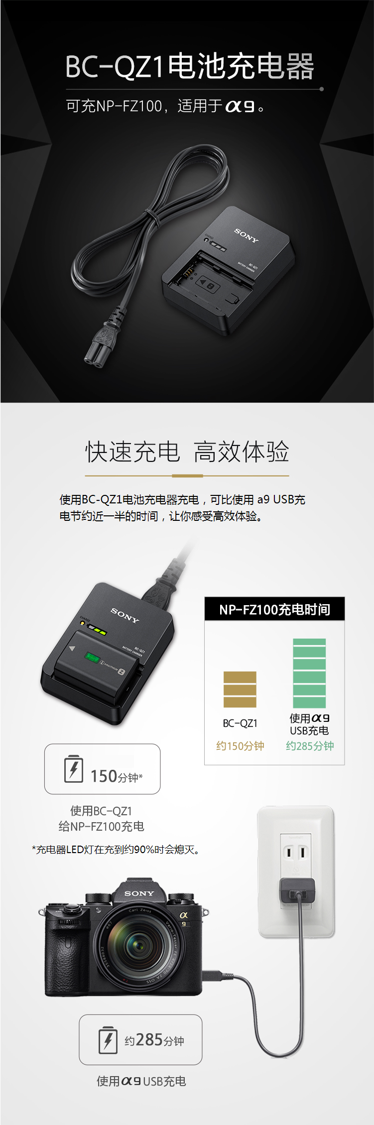 • 商品名稱:索尼(SONY) BC-QZ1 電池充電器(適用于a9/a7RM3電池FZ100)