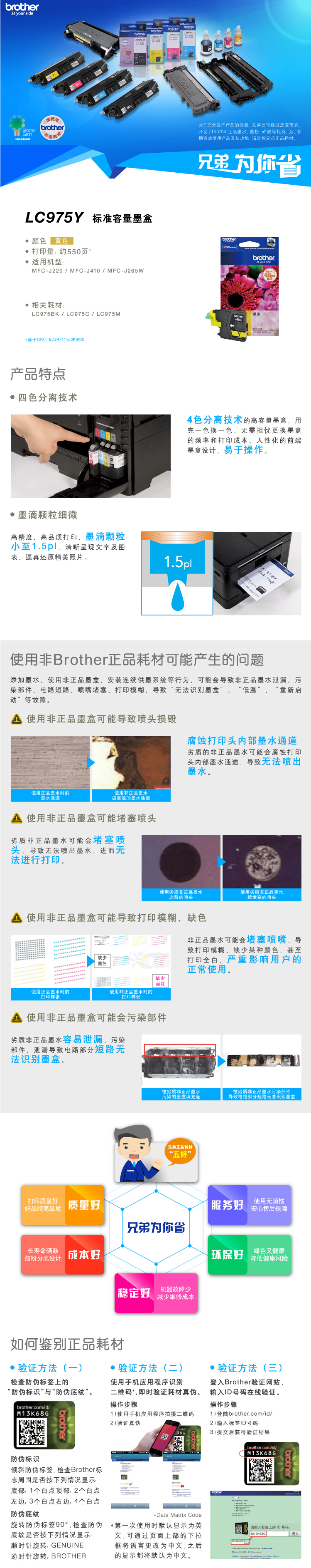 • 商品名稱:兄弟(brother) LC975Y 黃色墨盒(適用MFC-J220 J265W J410)