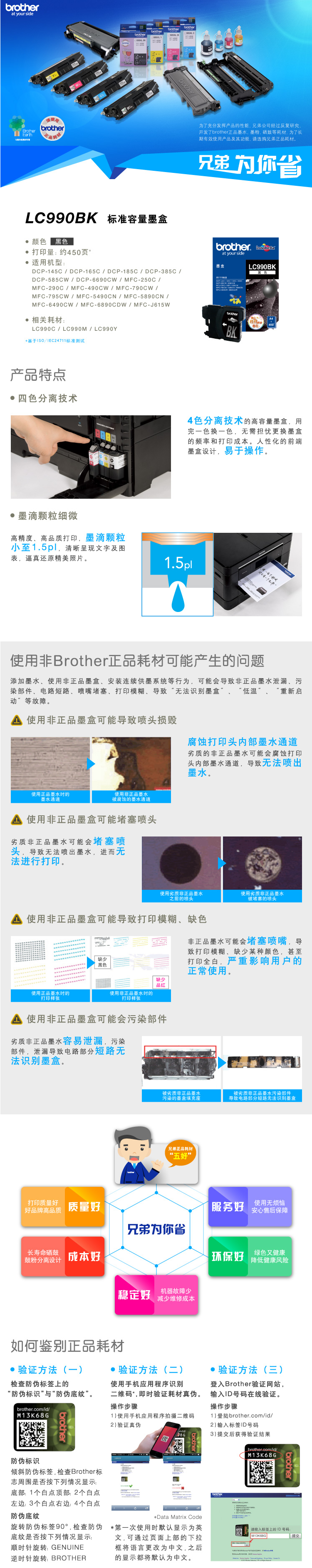 兄弟(brother) LC990BK 黑色墨盒 (適用DCP-145C/165C/385C/MFC-250C/290C/490CW/790CW/5490CN)