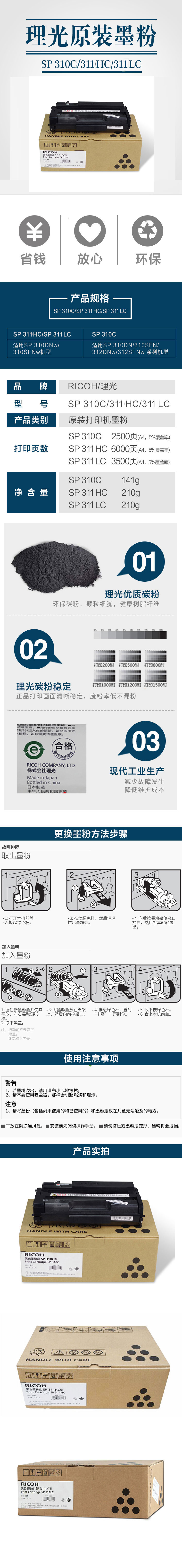 • 型號(hào):理光一體式墨粉盒SP 310C型
