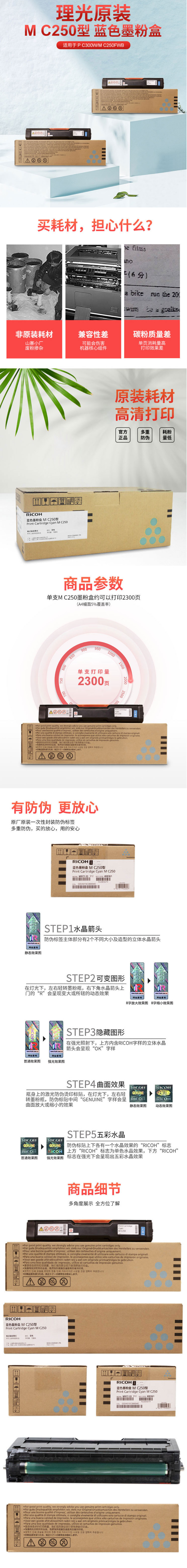 • 商品名稱:理光(Ricoh)藍色墨粉盒M C250型 適用于P C300W/M C250FWB(2300頁印量)