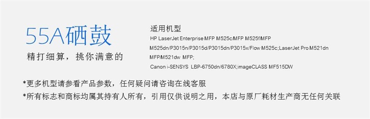 • 適用機(jī)型:適用于HP LaserJet Enterprise MFP M525c/MFP M525f/MFP M525dn/P3015n/P3015d/P3015dn/P3015x/Flow M525c;LaserJet Pro M521dn MFP/M521dw MFP; Canon i-SENSYS LBP-6750dn/6780X;imag