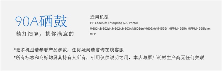 • 適用機型:適用于HP LaserJet Enterprise 600 Printer M602n/M602dn/M602x/M603n/M603dn/M603xh/M4555f MFP/M4555h MFP/M4555fskm MFP