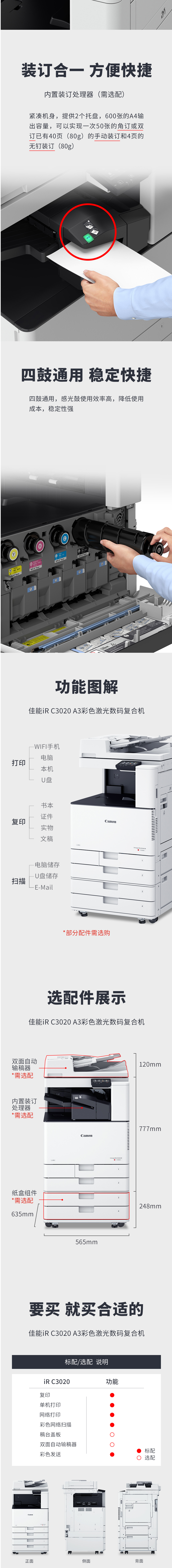 • 商品名稱:佳能(Canon)IRC3020W A3彩色激光數(shù)碼復(fù)合機(jī) 主機(jī)+蓋板