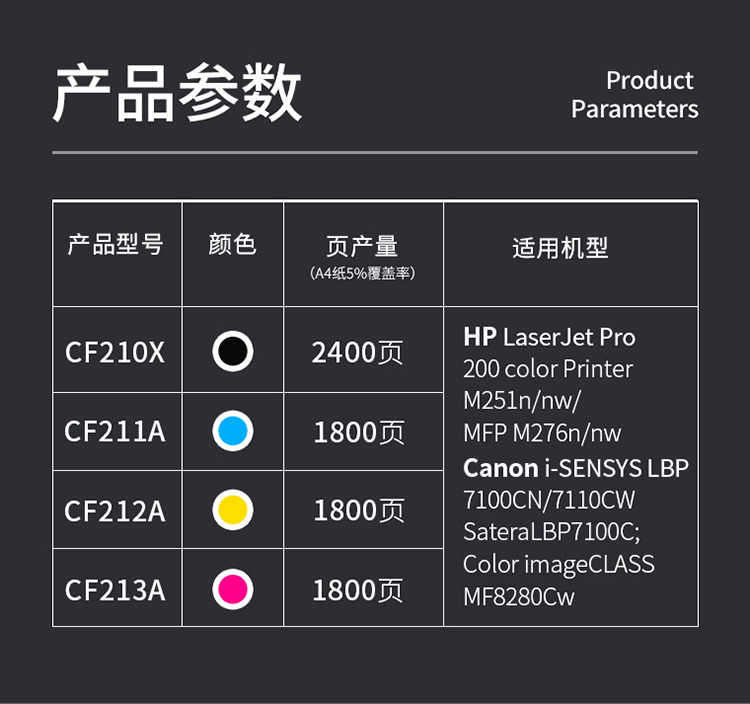 適用機型:適用于HP LaserJet Pro 200 color Printer M251n/nw/MFP M276n/nw Canon LBP7110Cw/LBP7100Cn/iCMF8280Cw/iCMF8250Cn/iCMF8230Cn/iCMF8210Cn/iCMF628Cw/iCMF626Cn/iCMF623Cn/iCMF621Cn