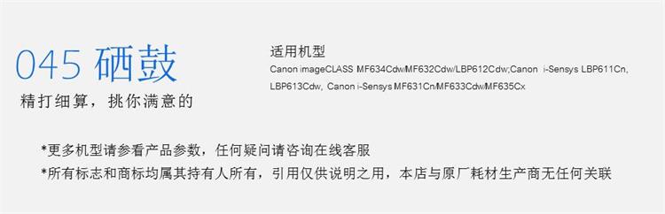 • 適用機(jī)型:Canon imageCLASS MF634Cdw/MF632Cdw/LBP612Cdw;Canon i-Sensys LBP611Cn;LBP613Cdw;Canon i-Sensys MF631Cn/MF633Cdw/MF635Cx