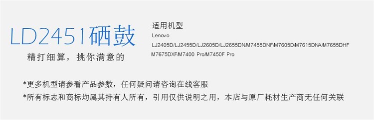 • 適用機型:Lenovo LJ2405D/LJ2455D/LJ2605D/LJ2655DN/M7455DNF/M7605D/M7615DNA/M7655DHF M7675DXF/M7400 Pro/M7450F Pro