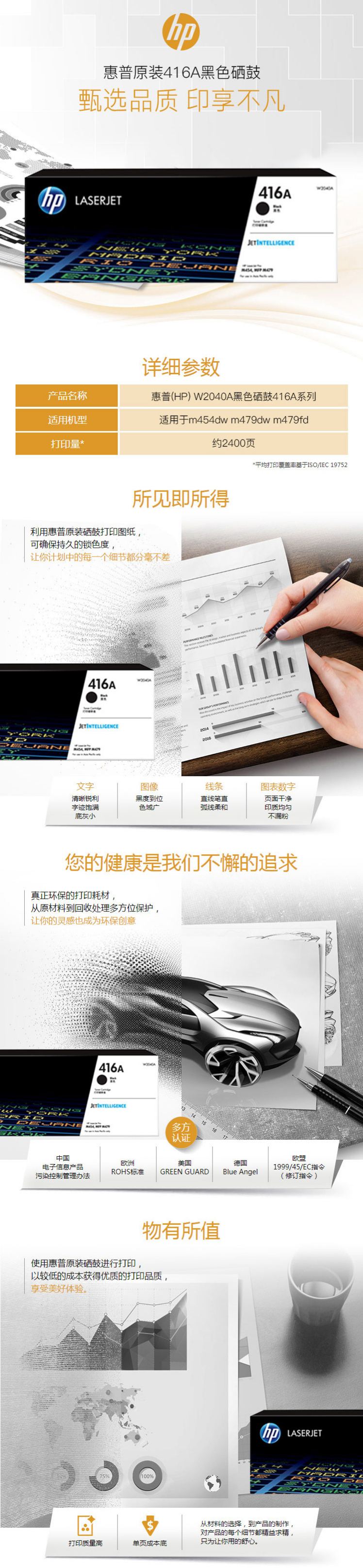 • 商品名稱:惠普(HP) W2040A黑色硒鼓416A系列 適用于M454/M479系列 約2400頁