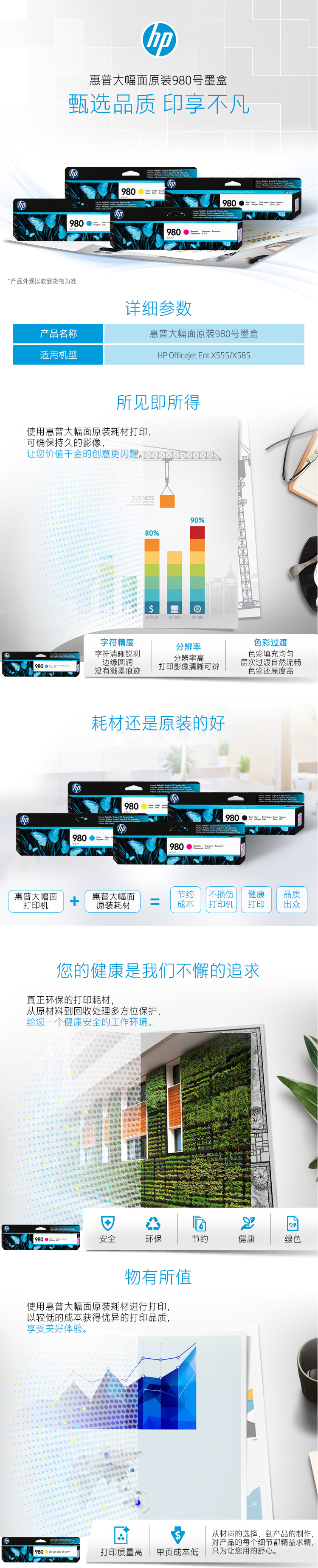 • 商品名稱:惠普(HP) 頁寬打印機(jī)墨盒 980黑色頁寬打印機(jī)墨盒D8J10A 10000頁 適用于HP Officejet Ent X585, X555