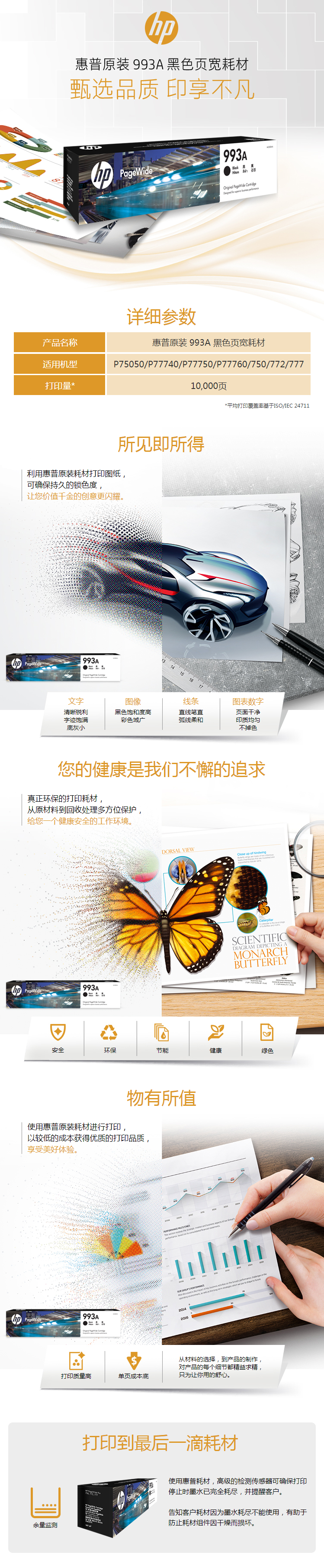 • 商品名稱:惠普(HP) 頁(yè)寬打印機(jī)墨盒 993A黑色頁(yè)寬打印機(jī)墨盒M0J88AA 10000頁(yè) 適用于HP PageWide Pro 750系列(750dn/750dw); HP PageWide Pro 772系列(772dn/772dw/772zt); HP PageWide Pro MFP 777系列(777hc/777z)