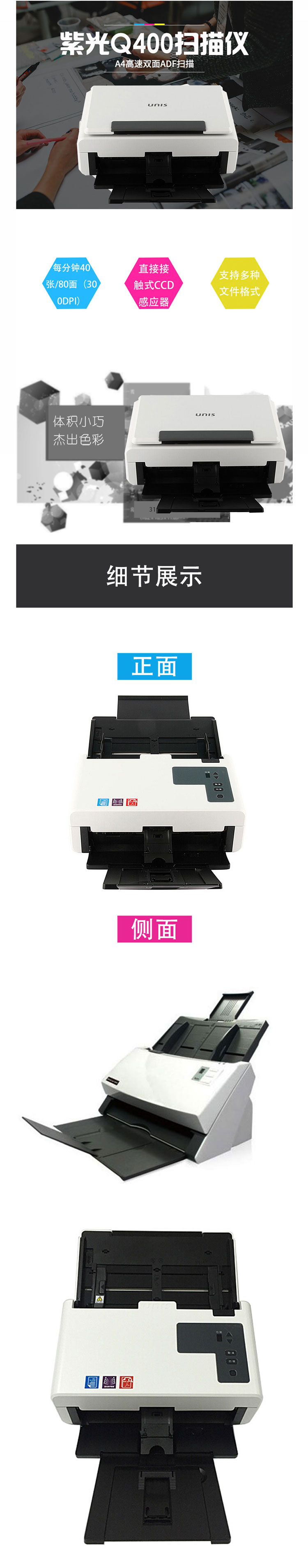 • 商品名稱:紫光(UNIS)Q400掃描儀 A4高速雙面自動(dòng)進(jìn)紙饋紙式