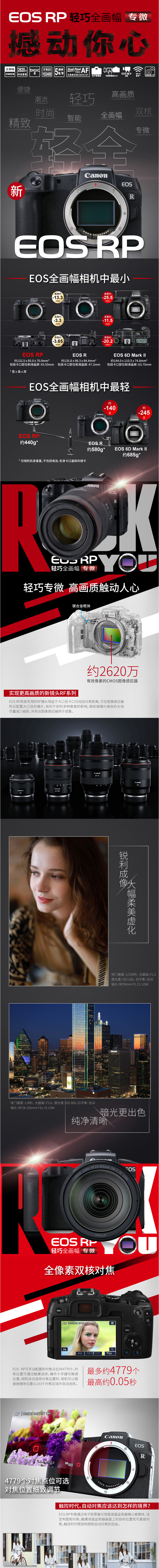 • 商品名稱:佳能(Canon)EOS RP套機 微單套機 全畫幅專業(yè)微單 含RF 24-105mm F4 L IS USM 微單鏡頭