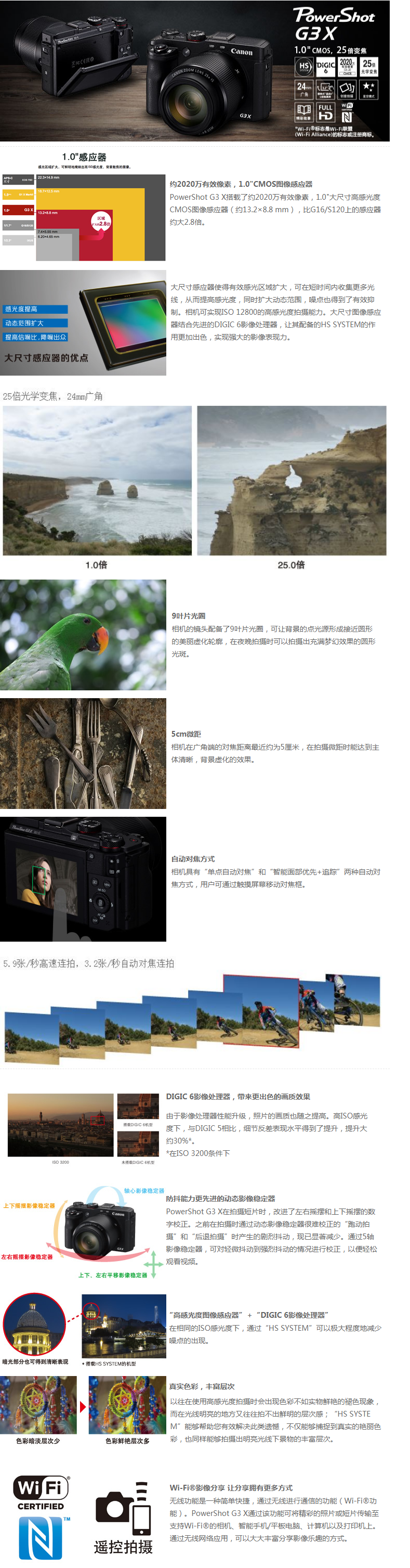 - 商品名稱:佳能(Canon)PowerShot G3 X 高清數(shù)碼相機(jī) 2020萬有效像素 DIGIC6處理器 24-600mm變焦