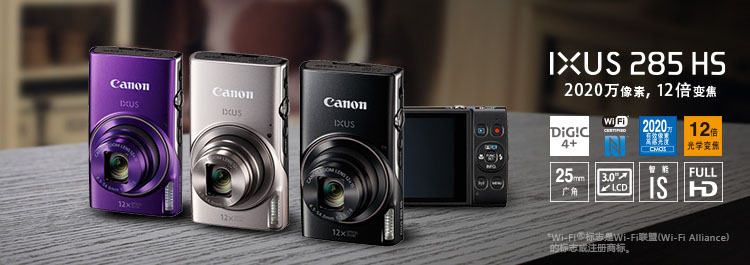 佳能(Canon)IXUS285 銀色數(shù)碼相機(jī) 2020萬像素 12倍光學(xué)變焦 25mm超廣角 支持Wi-Fi和NFC