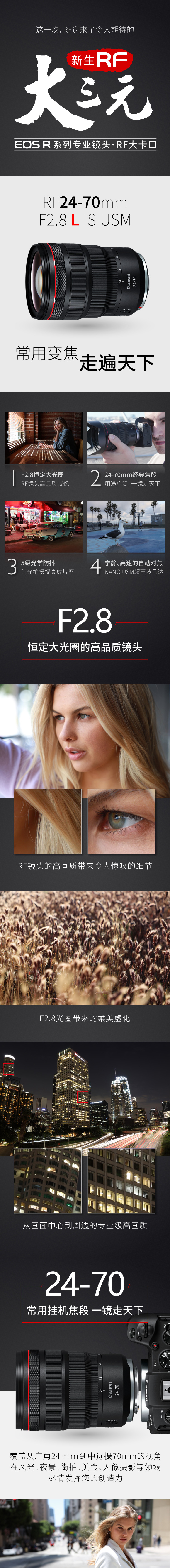 - 商品名稱:佳能(Canon)RF 24-70MM F2.8 L IS USM 中遠(yuǎn)攝變焦鏡頭 微單 全畫幅EOS R系統(tǒng)專用 適用于 R RP系列