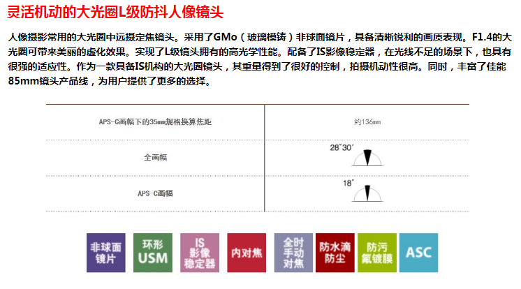 - 規(guī)格:EF 85MM F/1.4L IS USM