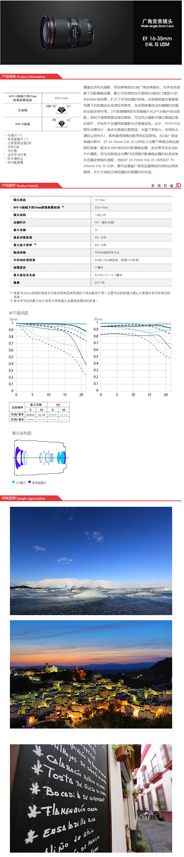 • 規(guī)格:EF 16-35MM F/4L IS USM