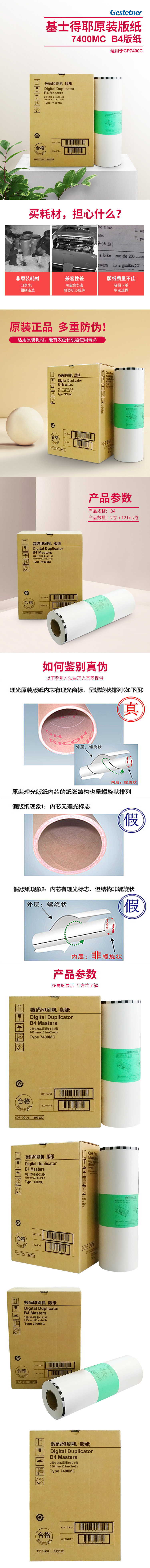 • 商品名稱:基士得耶(GESTETNER)7400MC (122m/卷*2卷)B4版紙 適用于CP7400C