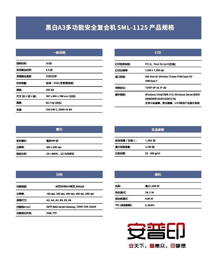 - 商品名稱:安普印 A3黑白激光數(shù)碼復(fù)合機(jī)SML-1125 標(biāo)配主機(jī)+輸稿器+雙紙盒+工作臺(tái)