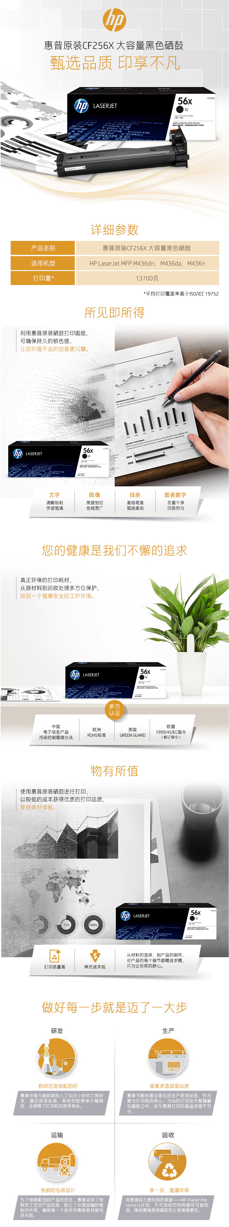 • 商品名稱:惠普(HP)56X 黑色大容量硒鼓CF256X 打印量13700頁適用于HP LaserJet MFP M436系列