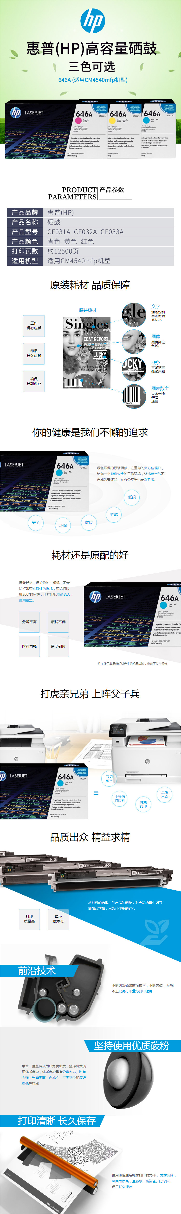 • 商品名稱:惠普(HP)646A 品紅硒鼓CF033A 打印量12500頁 適用于HP Color LaserJet 5500/5550系列