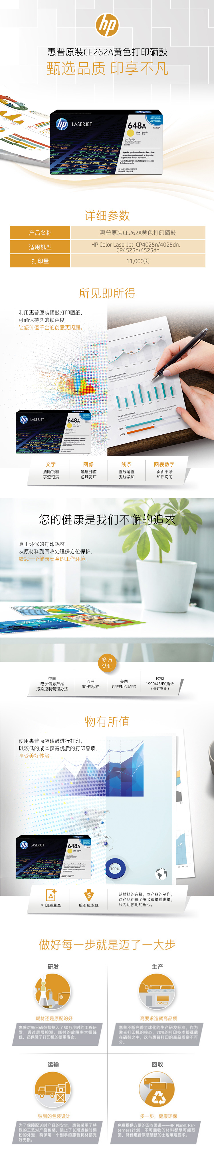 - 商品名稱:惠普(HP)648A 黃色硒鼓CE262A 打印量11000頁 適用于HP Color LaserJet CP4525 系列 HP Color LaserJet CP4025 系列