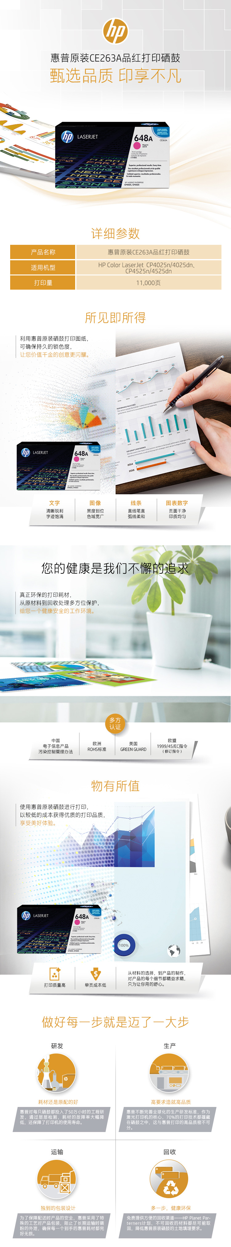 - 商品名稱:惠普(HP)648A 品紅色硒鼓CE263A 打印量11000頁 適用于HP Color LaserJet CP4525 系列 HP Color LaserJet CP4025 系列