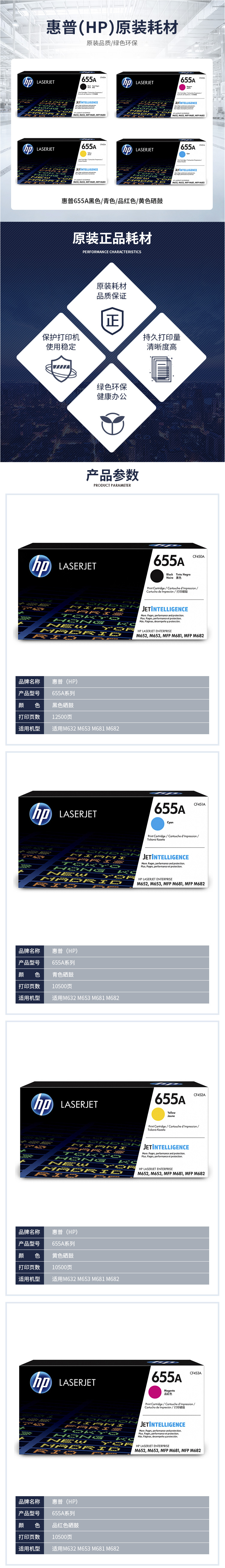 • 商品名稱:惠普(HP)655A 品紅硒鼓CF453A 打印量10500頁 適用于HP Color LaserJet Enterprise M652/M653/M681/M682 系列