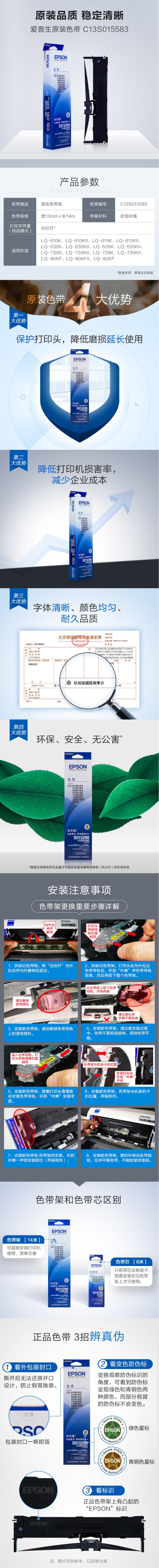 • 商品名稱(chēng):愛(ài)普生(Epson)LQ630K S015583黑色色帶 適用LQ-610k/615k/630K/635k/730K/735k/80KF