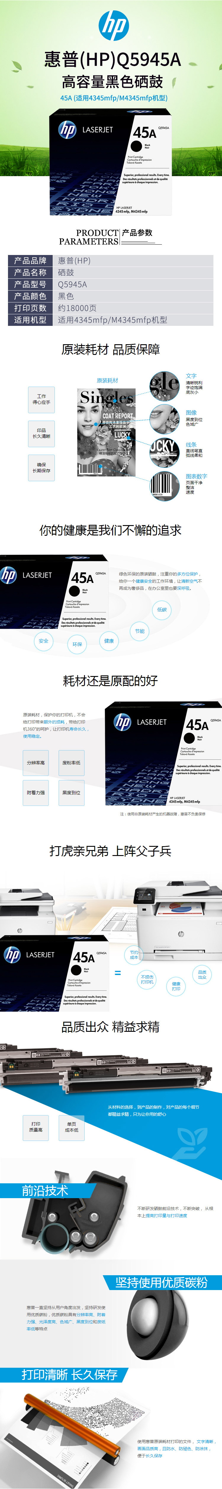 - 商品名稱(chēng):惠普(HP)45A 黑色硒鼓Q5945A 打印量18000頁(yè) 適用于HP LaserJet M4345 MFP系列