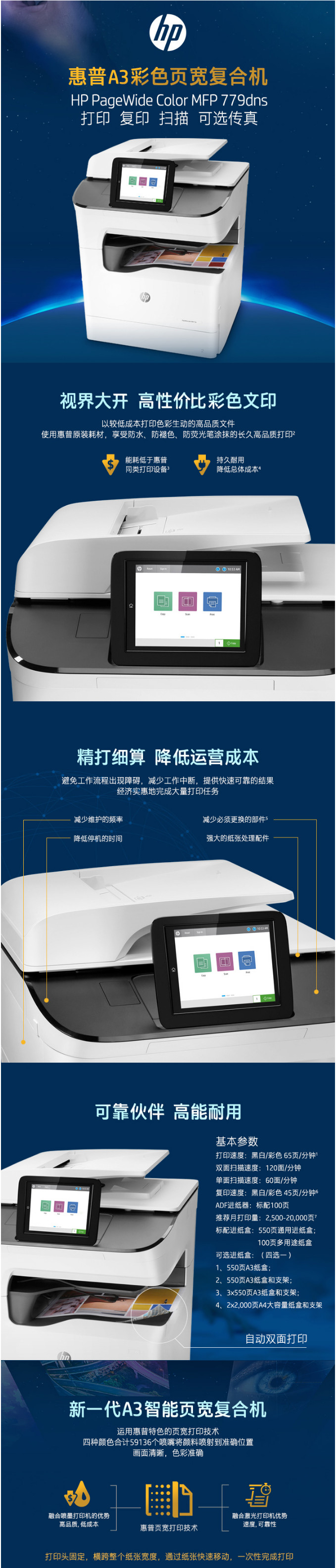 - 商品名稱:惠普(HP)A3頁寬彩色復(fù)合機(jī)PageWide Color MFP 779dns 65ppm 打印 復(fù)印 掃描 可選傳真 自動(dòng)雙面 有線網(wǎng)絡(luò) 送稿器 分辨率1200×1200dpi 適用耗材:HP 993A/993X 一年下一個(gè)工作日上門