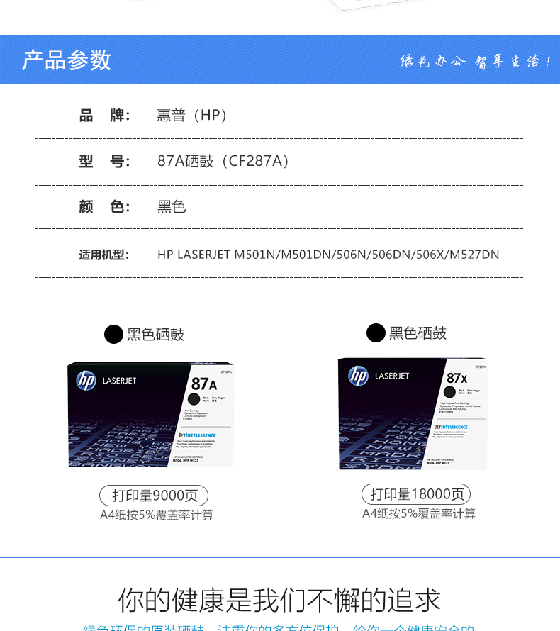惠普(HP)87A 黑色硒鼓CF287A 打印量9000頁(yè) 適用于HP Laser Jet Enterprise M506 系列 HP Laser Jet Enterprise MFP M527 系列 HP LaserJet Pro M501 系列