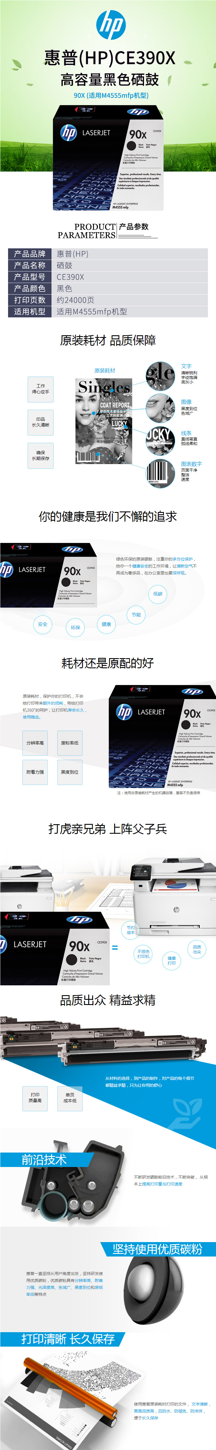 - 商品名稱:惠普(HP)90X 黑色大容量硒鼓CE390X 打印量24000頁(yè) 適用于HP LaserJet M4555 MFP系列 HP LaserJet Enterprise 600 M602/603系列
